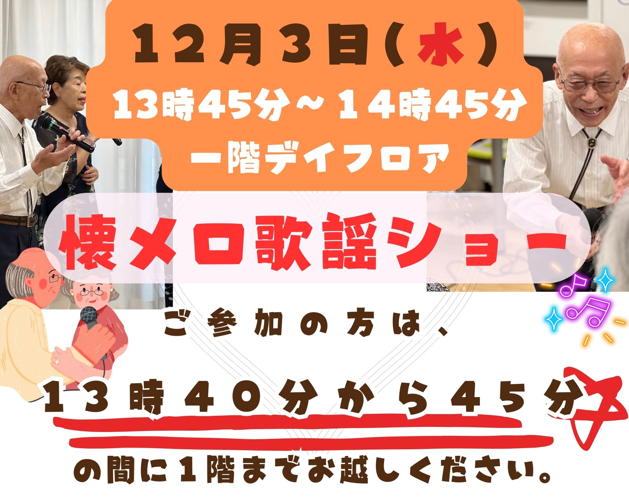 デイサービスは、朝お迎えに伺い、日中をデイサービスで過ごしていただき、夕方ご自宅までお送りするサービスです。