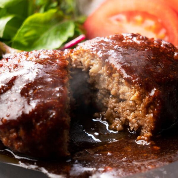 ふっくら焼き上げたハンバーグに、濃厚なデミグラスソースをかけた洋食の定番です。