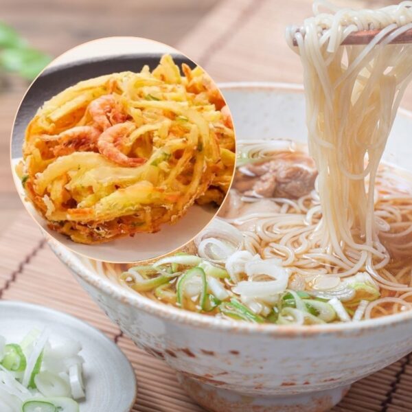 あっさり上品なにゅうめんに、香ばしいエビのかき揚げを添えた満足感ある一品です。