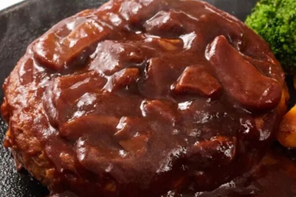 肉の旨みを閉じ込めたジューシーなハンバーグに、濃厚なコクの特製デミグラスソースを添えた贅沢な一品です。