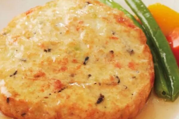 香ふっくら仕上げた豆腐ハンバーグに、出汁の効いた和風あんをたっぷりとかけました。体に優しい味わいです。