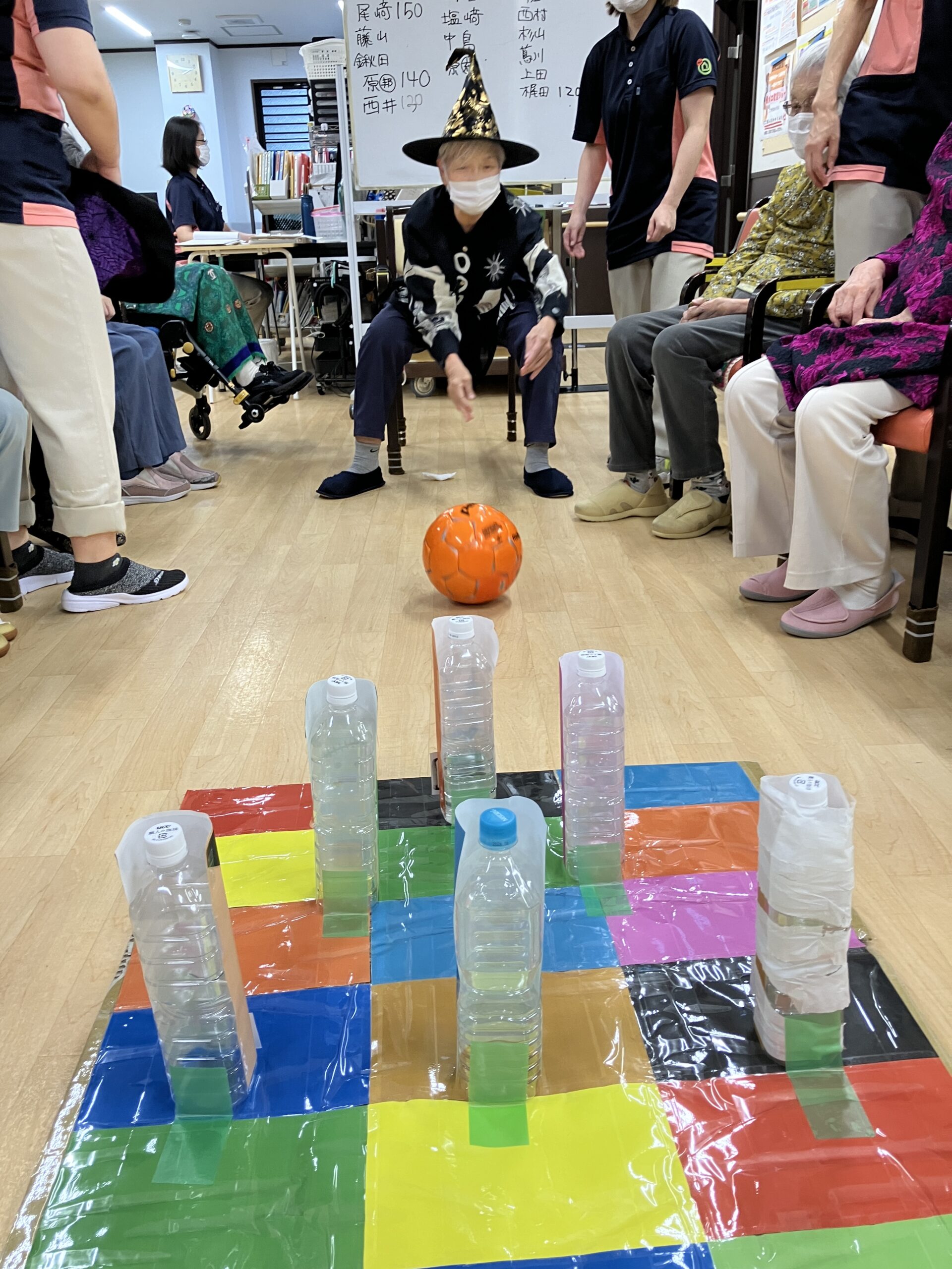 10/20月 デイサービスほわいえ四條にて、ハロウィン祭りを開催しました。利用者さまが思い思いの仮装を楽しみ、笑顔あふれる一日になりました。ボーリング大会では大盛り上がり!その後は、仮装姿での写真撮影も行い、楽しい思い出がたくさんできました( ^)o(^ )